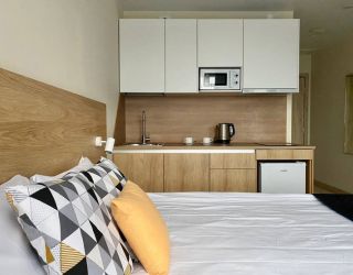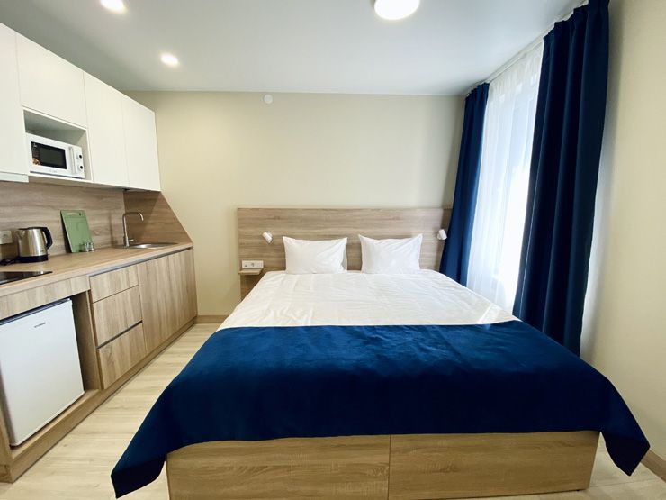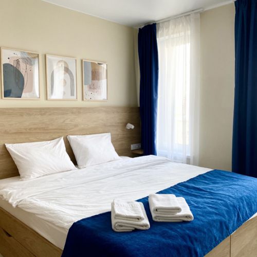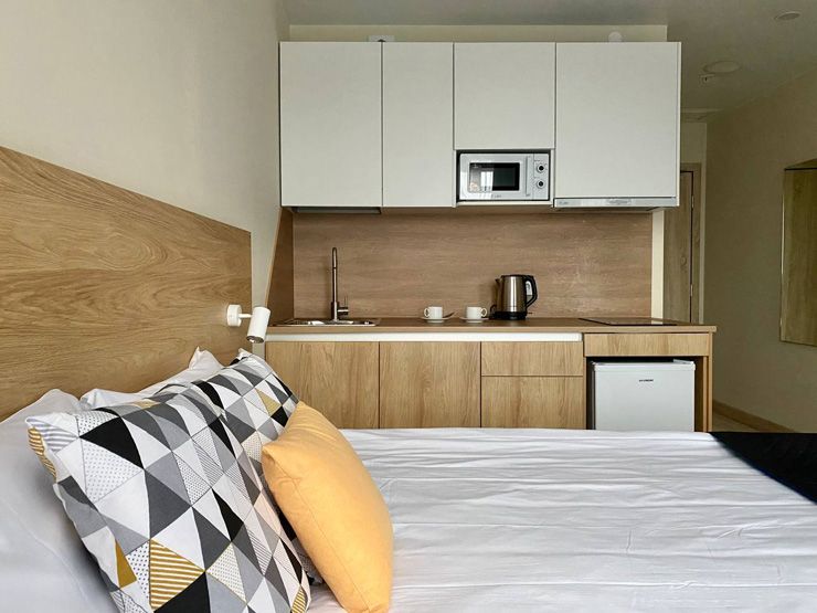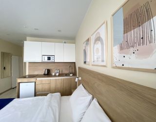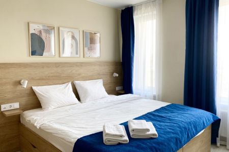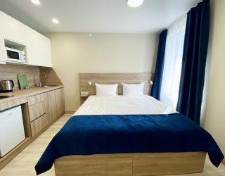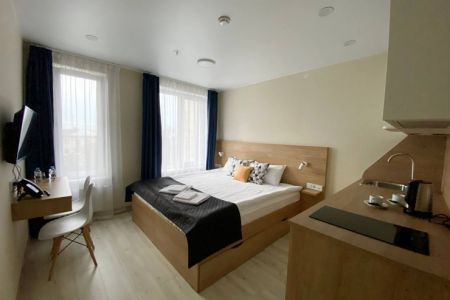 Апартаменты расположились в многоэтажном современном здании в жилом комплексе ZOOM. В распоряжении гостей номер с уютным стильным интерьером. Среди удобств – кухонный уголок с электроплитой, электрочайником, микроволновой печью и мини-холодильником, телевизор и высокоскоростной интернет, санузел с душевой кабиной.